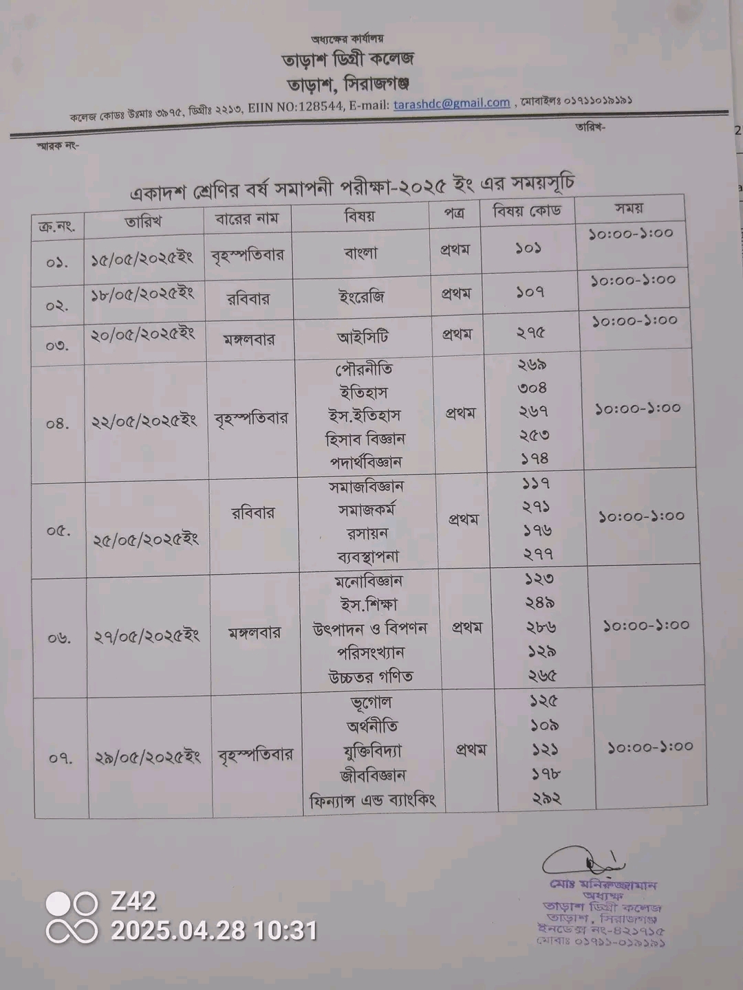 বর্ষসমাপনী পরীক্ষার সংসধীত রুটিন